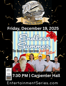 Endless Summer, the #1 Beach Boys Tribute in the Surfin’ USA, brings you the ultimate Beach Boys Experience! Led by Allan Conner and Earl Lemons, this Dallas-based band promises to deliver spot-on vocals, high energy, and nonstop fun. Get ready for beach balls, sing-a-longs, and “Good Vibrations” all night long. This incredible six-piece band will take you on a musical journey to the fabulous ’60s with classic surf and hot rod sounds as well as a batch of Christmas favorites!