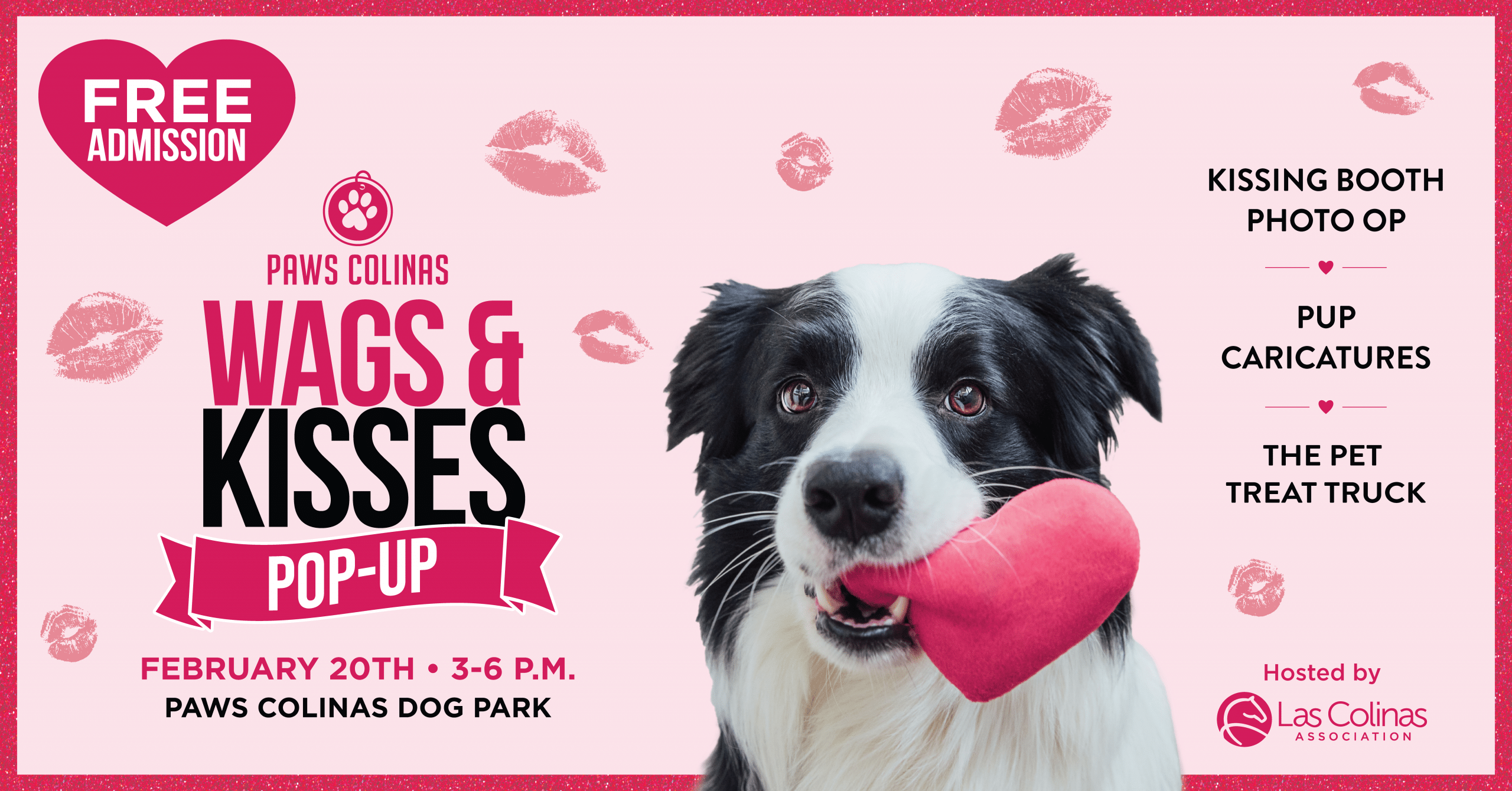 Show your pup some extra love with a paw-some playdate at the Wags & Kisses Pop-Up hosted by the Las Colinas Association. In celebration of National Love Your Pet Day, Wags & Kisses returns to the Paws Colinas dog park on February 20th from 3–6 p.m.